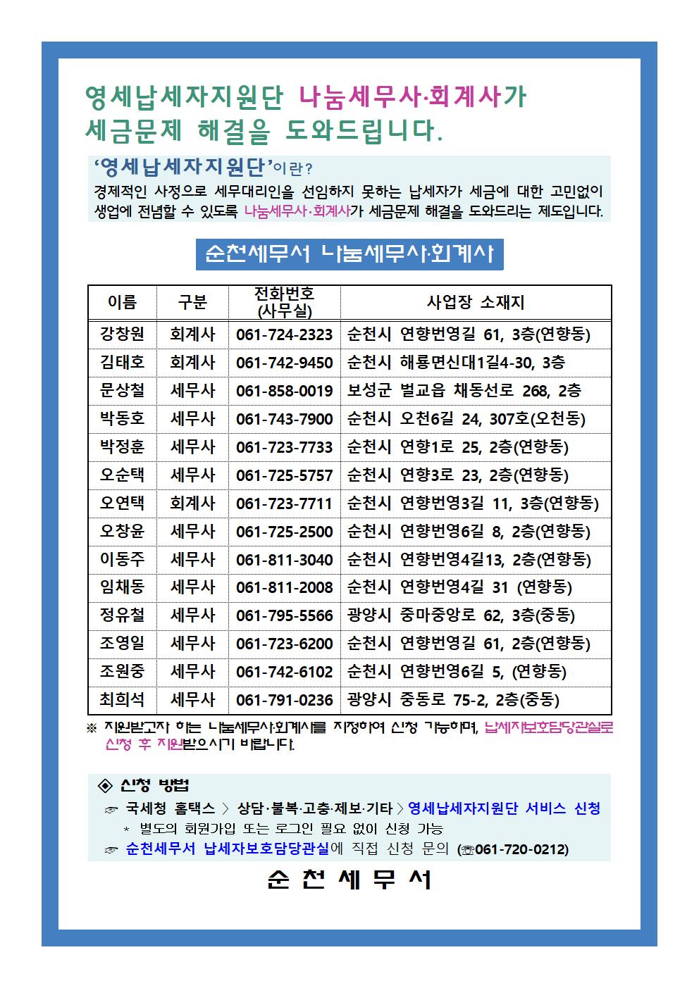 영세납세자지원단 나눔세무사 · 회계사 명단