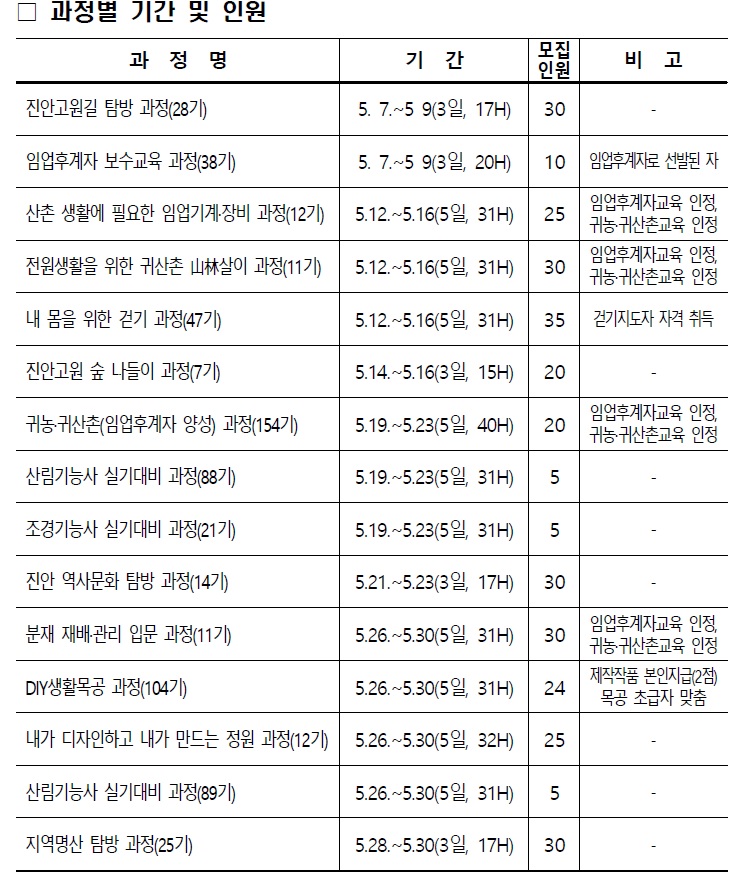 산림조합중앙회진안교육원 2025년 5월 교육과정 안내