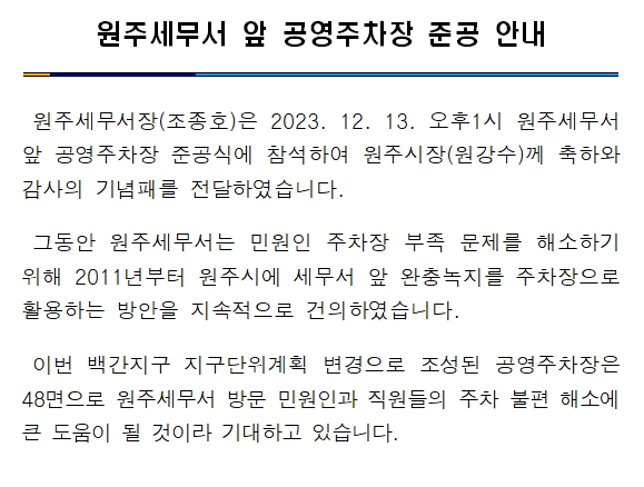 원주세무서, 2024년 설 명절 맞아 사회공헌활동 실시