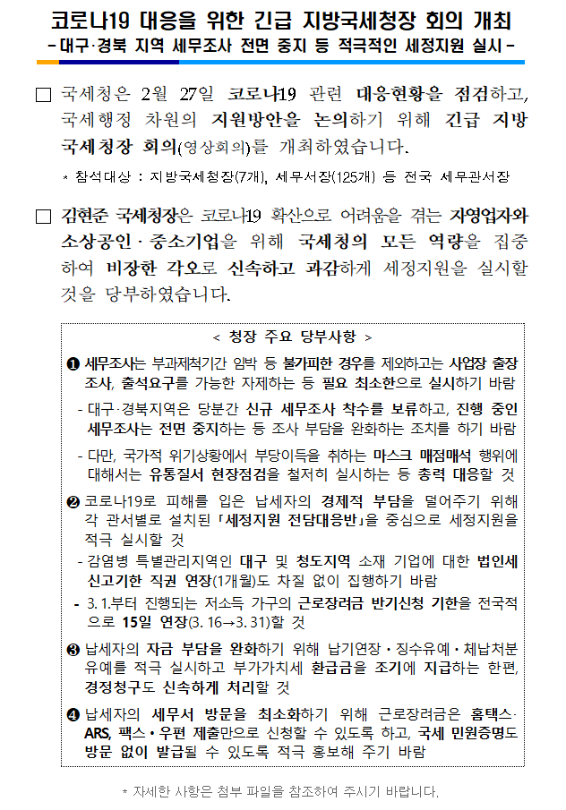 200227_코로나19 대응을 위한 긴급 지방국세청장 회의.hwp