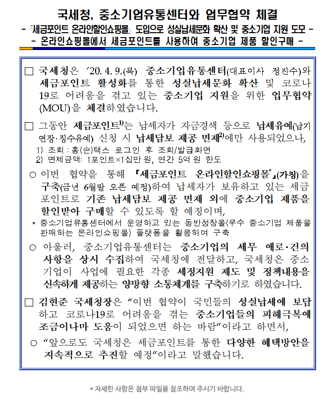 5120200409155322_국세청_ 중소기업유통센터와 업무협약.hwp