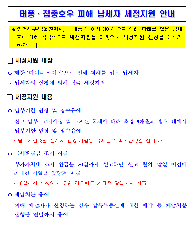 태풍·집중호우 피해 납세자 세정지원 .hwp