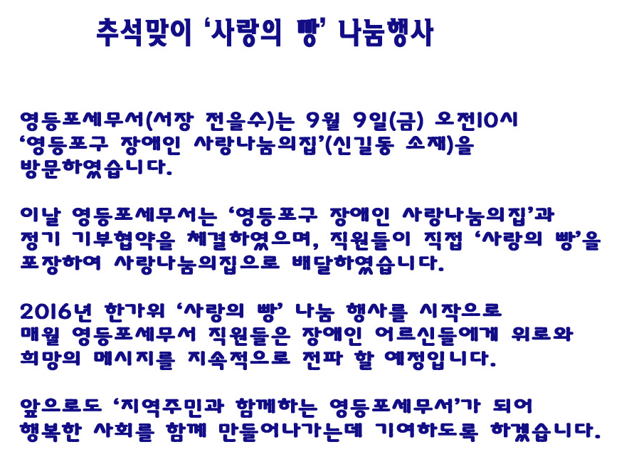 추석맞이 '사랑의 빵' 나눔행사