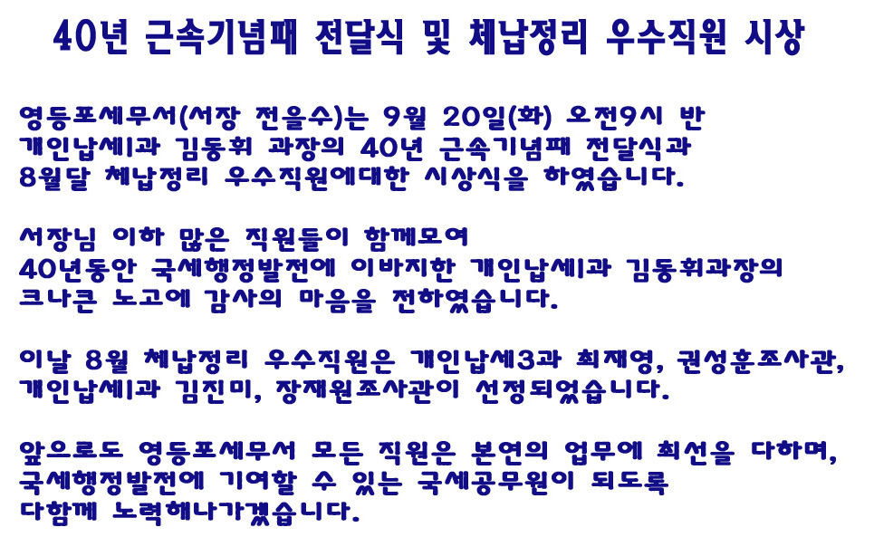 40년 근속기념패 전달식 및 체납정리 우수직원 시상