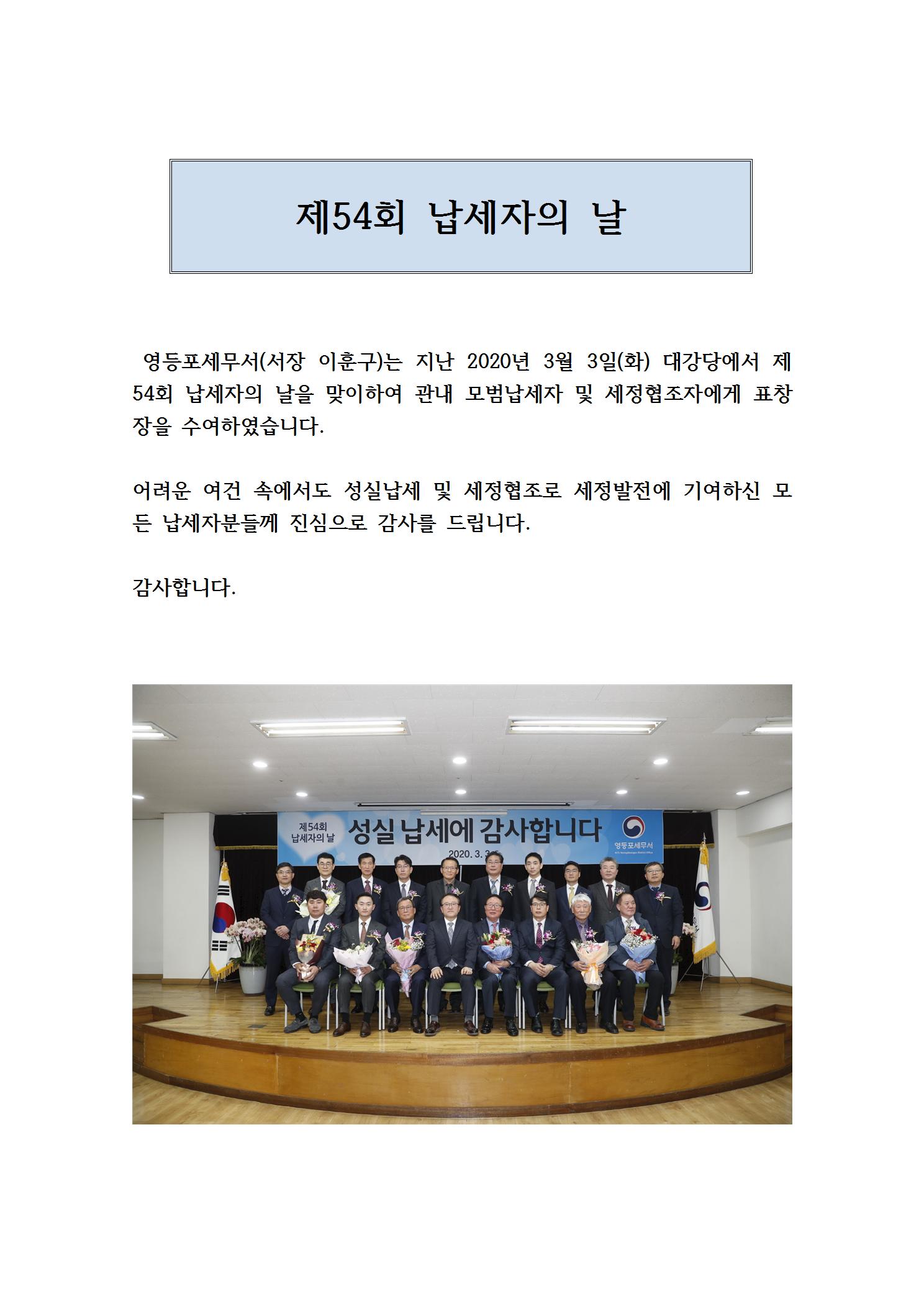 제54회 납세자의날 표창