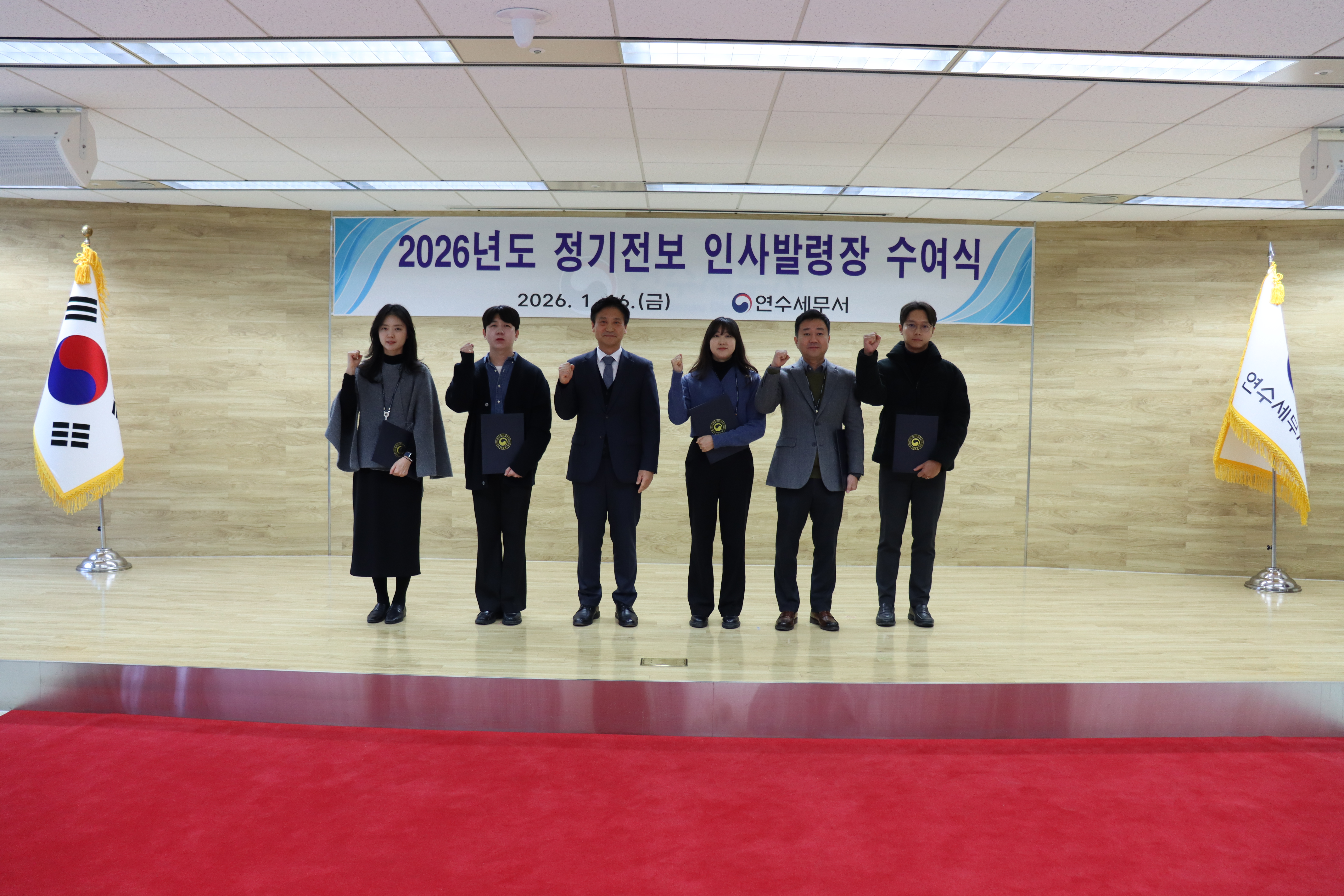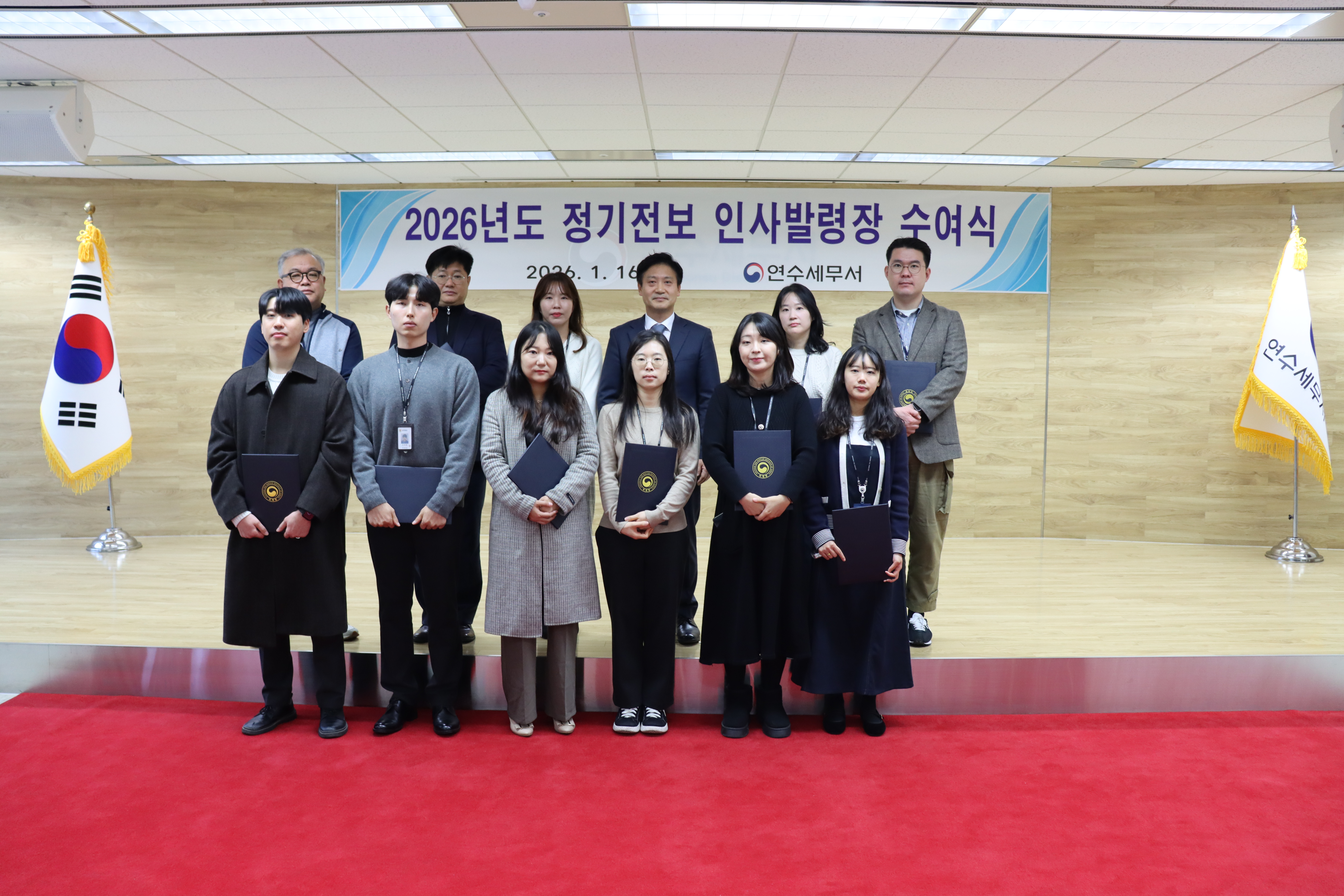 2026. 01. 16. (금) 정기전보에 따라 연수세무서로 전입 온 직원들의 인사발령장 수여식이 진행되었습니다.