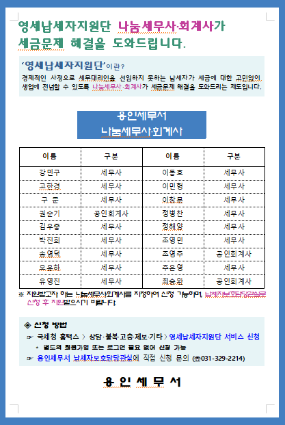 영세납세자지원단 나눔세무사,회계사 명단 게시
